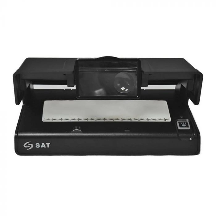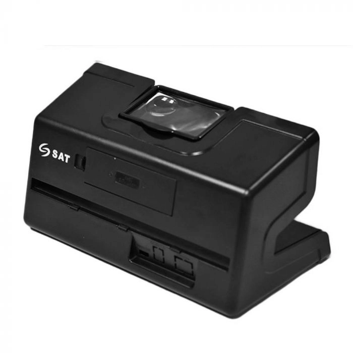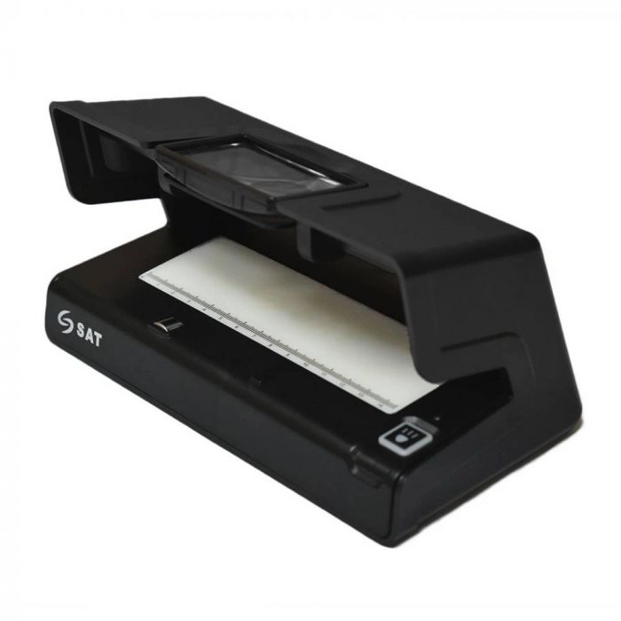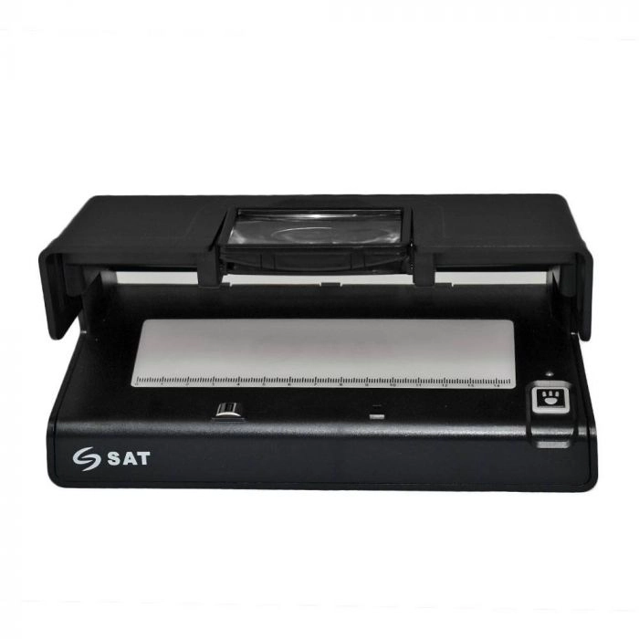 La SAT BL21 es un detector manual de billetes falsos o sospechosos, diseñado para diferenciar los billetes legítimos de los falsos. El DBL21 realiza su verificación mediante tecnología ultravioleta (UV), marca de agua (WM) y banda magnética (MG) en los distintos mecanismos de seguridad del billete. Este equipo también integra una lupa de ampliación para una visualización detallada del billete.